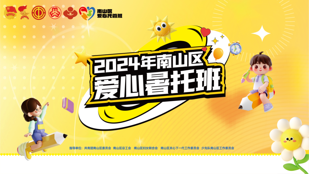 活動簡介:為緩解全區(qū)中小學生暑期“看護難”問題,引導和幫助青少年度過一個安全、快樂、有意義的假期,南山團區(qū)委、區(qū)總工會、區(qū)婦聯(lián)、區(qū)關工委、區(qū)少工委聯(lián)合各街道團工委開展2024年南山區(qū)“愛心暑托班”活動,為6-14歲青少年提供公益看護服務,在陪伴青少年自主學習基礎上,通過多樣化課程形式激發(fā)青少年的興趣和潛能,豐富青少年暑假生活。