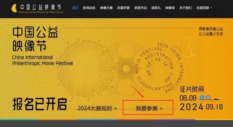 方式二:登陸中國公益映像節(jié)官網(wǎng)https://www.cipmf.com/pc , 點(diǎn)擊首頁上“我要參賽”并按指引操作