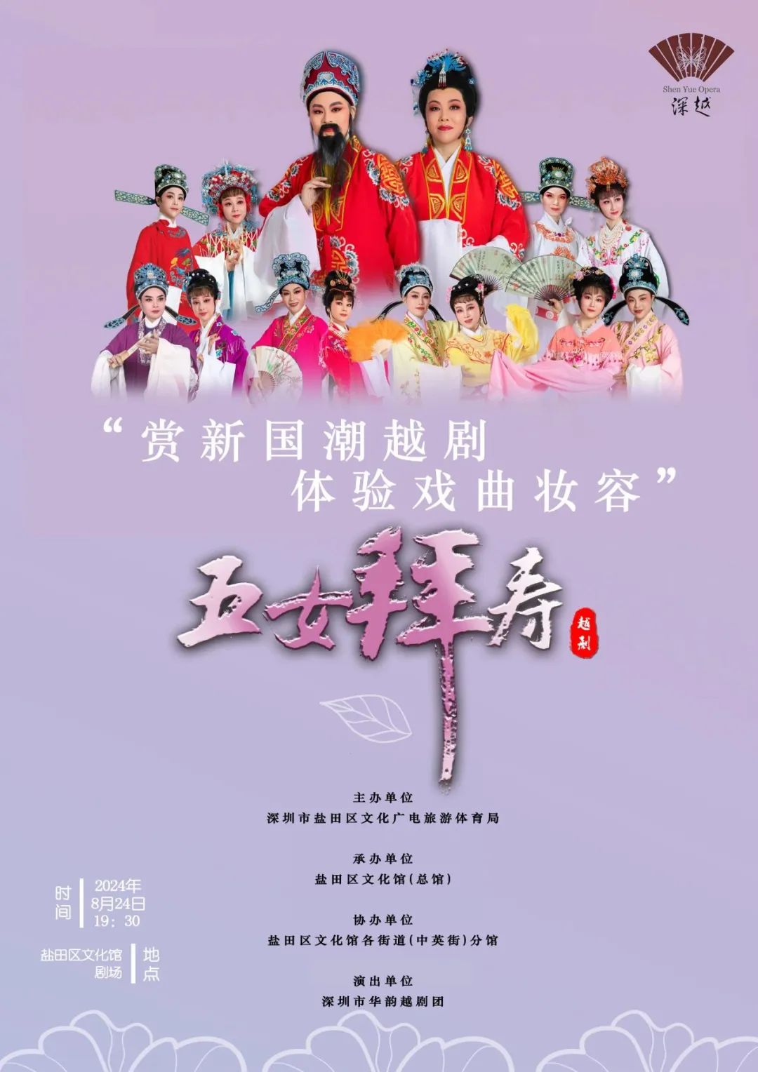 活動(dòng)簡(jiǎn)介:深圳市華韻越劇團(tuán)將于8月24日在鹽田區(qū)文化館舉辦公益演出《五女拜壽》,本次公益活動(dòng)由深圳市鹽田區(qū)文化廣電旅游體育局主辦,鹽田區(qū)文化館承辦。觀眾可著古裝或戲服免票入場(chǎng),并有機(jī)會(huì)體驗(yàn)戲曲妝容。演出由史濟(jì)華等資深藝術(shù)家指導(dǎo),匯聚眾多優(yōu)秀演員。演出前,專業(yè)化妝師將現(xiàn)場(chǎng)打造古典妝容,讓您穿越千年,邂逅古典美。名額有限,點(diǎn)擊鏈接預(yù)約免費(fèi)搶票,共享這場(chǎng)戲韻芬芳的文化盛宴。