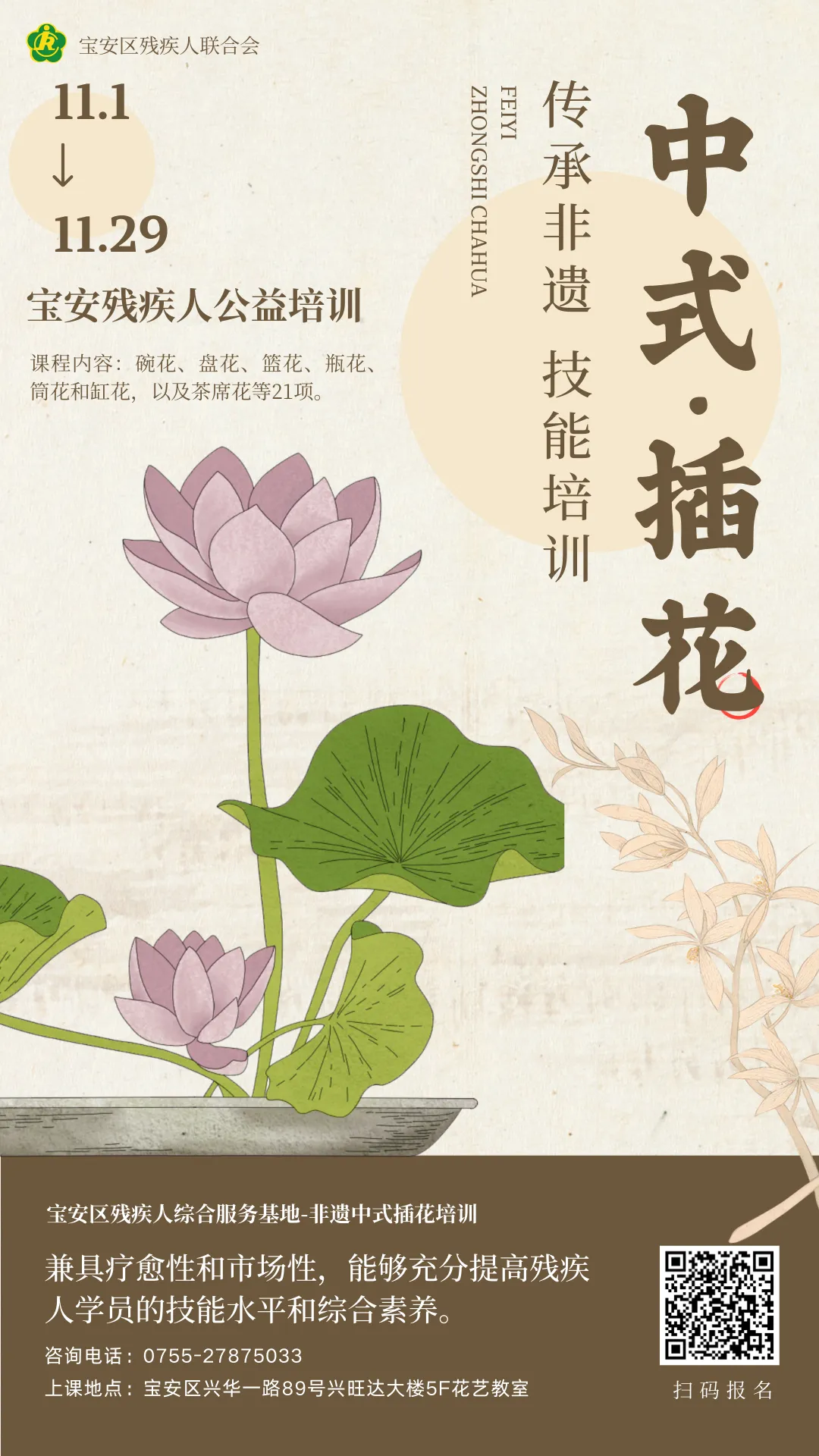 3.公益課程招生 非遺中式插花培訓(xùn)