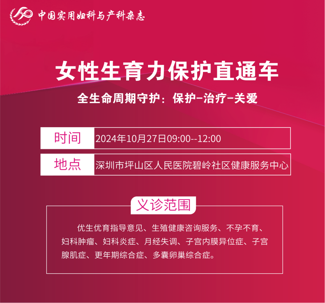 活動(dòng)簡(jiǎn)介:為更好地貫徹國家“提高女性生殖健康,保護(hù)生育力”國策的要求,《中國實(shí)用婦科與產(chǎn)科雜志》編委會(huì)在全國范圍內(nèi)開展“女性生育力保護(hù)直通車”公益活動(dòng)。深圳市坪山區(qū)人民醫(yī)院將于10月27日在碧嶺社區(qū)健康服務(wù)中心開展義診宣傳活動(dòng)