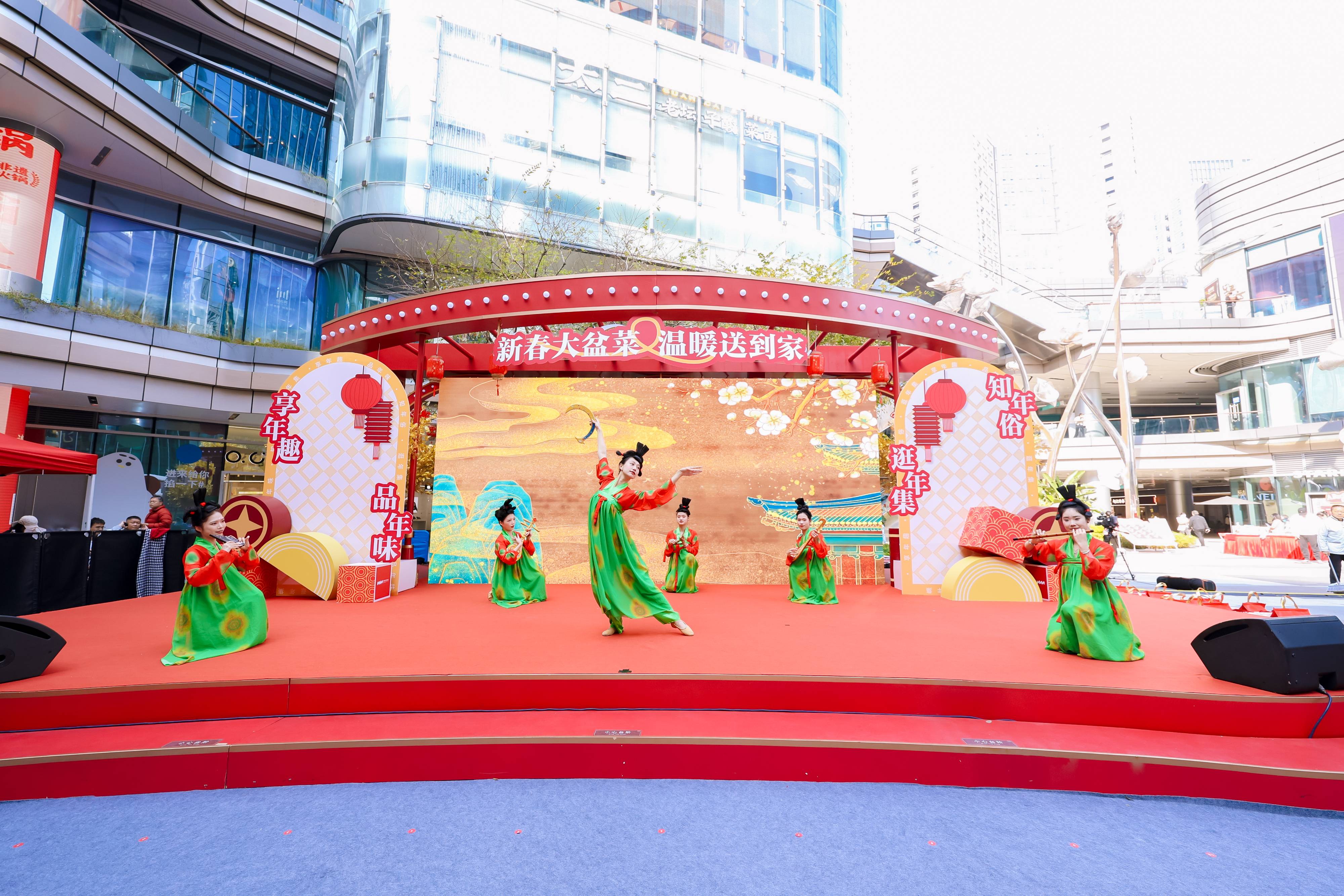 在“新春大盆菜 溫暖送到家”活動(dòng)現(xiàn)場(chǎng),龐大的金色發(fā)財(cái)樹(shù)新春裝置成為了男女老少新年祈福打卡墻;舞蹈《唐宮夜宴》驚艷登場(chǎng),華服少女帶領(lǐng)市民穿越古風(fēng)新春;“福祿壽”三星霸氣來(lái)襲,不少市民紛紛合影為新年添福……