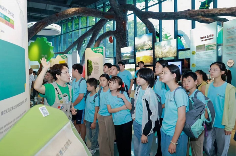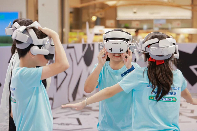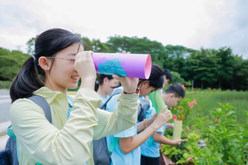第三天清晨,探秘城市中心的“候鳥天堂”——福田紅樹林生態(tài)公園。孩子們舉著用東鵬飲料瓶自制的“生態(tài)觀察筒”,搜尋灘涂上的候鳥蹤跡。小小的塑料瓶,此刻成了連接自然與創(chuàng)造力的橋梁。當(dāng)電梯直抵平安金融中心的云端之巔,116層觀光層上,深圳壯闊的城市畫卷在腳下鋪展,小小的手指興奮地指點(diǎn)著熟悉或陌生的地標(biāo)。巨大的阻尼器模型前,孩子們屏息凝神,聆聽講解員介紹這座摩天大樓如何防風(fēng)抗震屹立不倒,黑科技的震撼無聲傳遞。而在深圳報(bào)業(yè)樹莓VR未來影院,戴上頭顯,跟隨九大IP劇目開啟四維沉浸體驗(yàn),一秒穿越古今,研學(xué)的科技范拉滿。