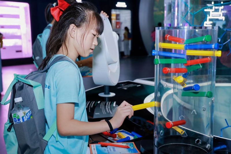 深圳理工大學(xué)校園,綠意蔥蘢。孩子們漫步智慧校園,好奇張望創(chuàng)新工場,零距離觀察宿舍食堂,沉浸式感受高校生活。一張張承載著夢想的小紙條,被鄭重放入“時(shí)間膠囊”,那一刻,大學(xué)不再是遙不可及的詞匯,而是心中悄然點(diǎn)亮的燈塔。午后,投入深圳科學(xué)技術(shù)館那艘巨大“星際飛船”的懷抱,與AI 對話,和機(jī)器人共舞,仰望模擬的浩瀚星空,發(fā)出“原來世界這么大”的感嘆,科技的魅力從此深植童心。