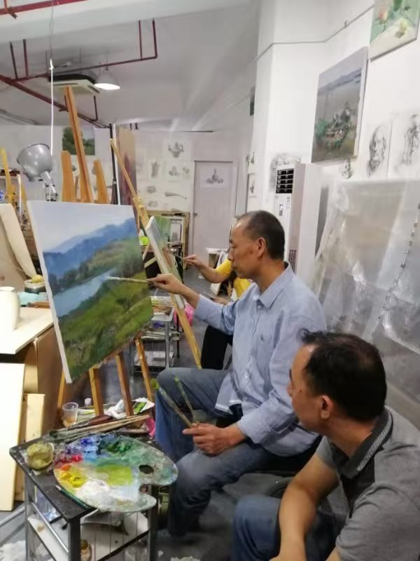 此事讓蔣慶北第一次真切意識(shí)到大芬油畫村里殘疾畫工群體所面臨的普遍困境。他觀察到這里竟聚集了七八十名殘疾畫工,他們大多沒有接受過系統(tǒng)美術(shù)教育,繪畫水平有限,靠臨摹油畫為生,生活頗為艱難,這一現(xiàn)實(shí),像一根尖刺扎進(jìn)蔣慶北的心里,也堅(jiān)定了他必須做點(diǎn)什么的決心。