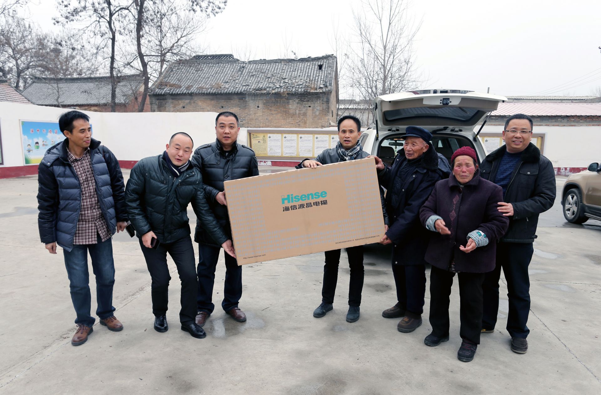 張國防(右四)為李海欣父母買的彩電