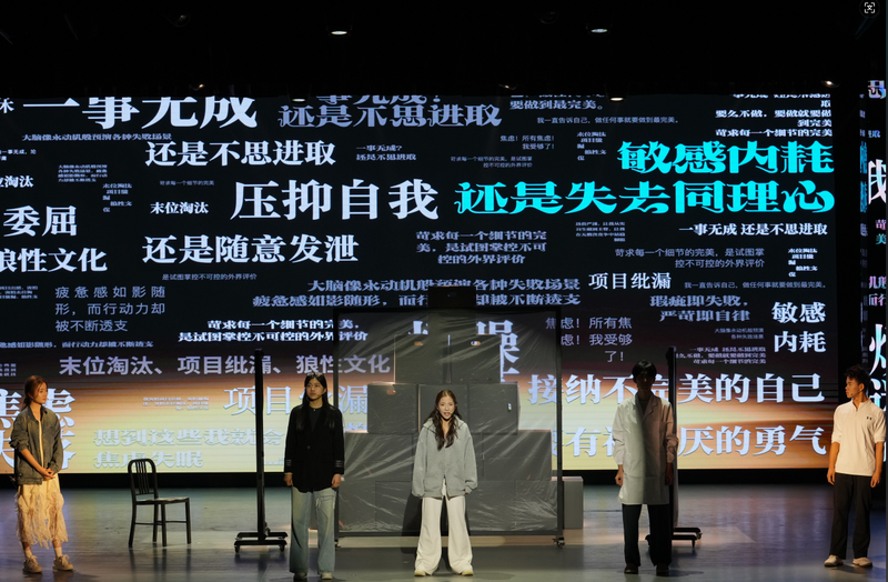 隨后,來自全市七所學(xué)校的優(yōu)秀心理劇依次登臺,學(xué)生們用充滿張力的肢體動作、真摯的眼神與自然的臺詞,將成長中的困惑、掙扎與突破娓娓道來。舞臺布景簡潔卻富有創(chuàng)意——幾張桌椅、幾束燈光,就能營造出“情緒便利店”的奇妙氛圍;幾個簡單的道具切換,又能瞬間將觀眾帶入“宿舍模擬器”的日常。每當(dāng)劇情觸及內(nèi)心深處,觀眾席上都會傳來低低的共鳴聲,有時是會心一笑,有時是輕輕的嘆息。